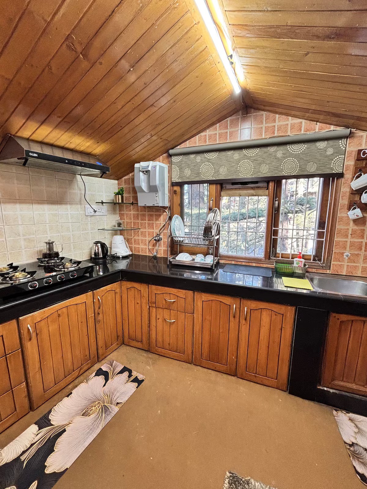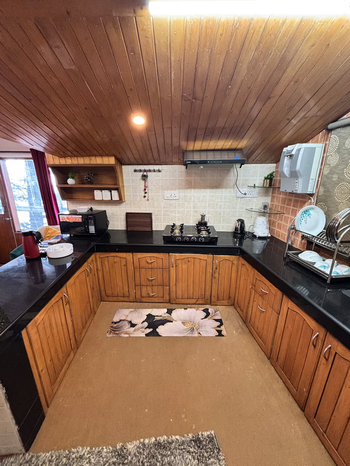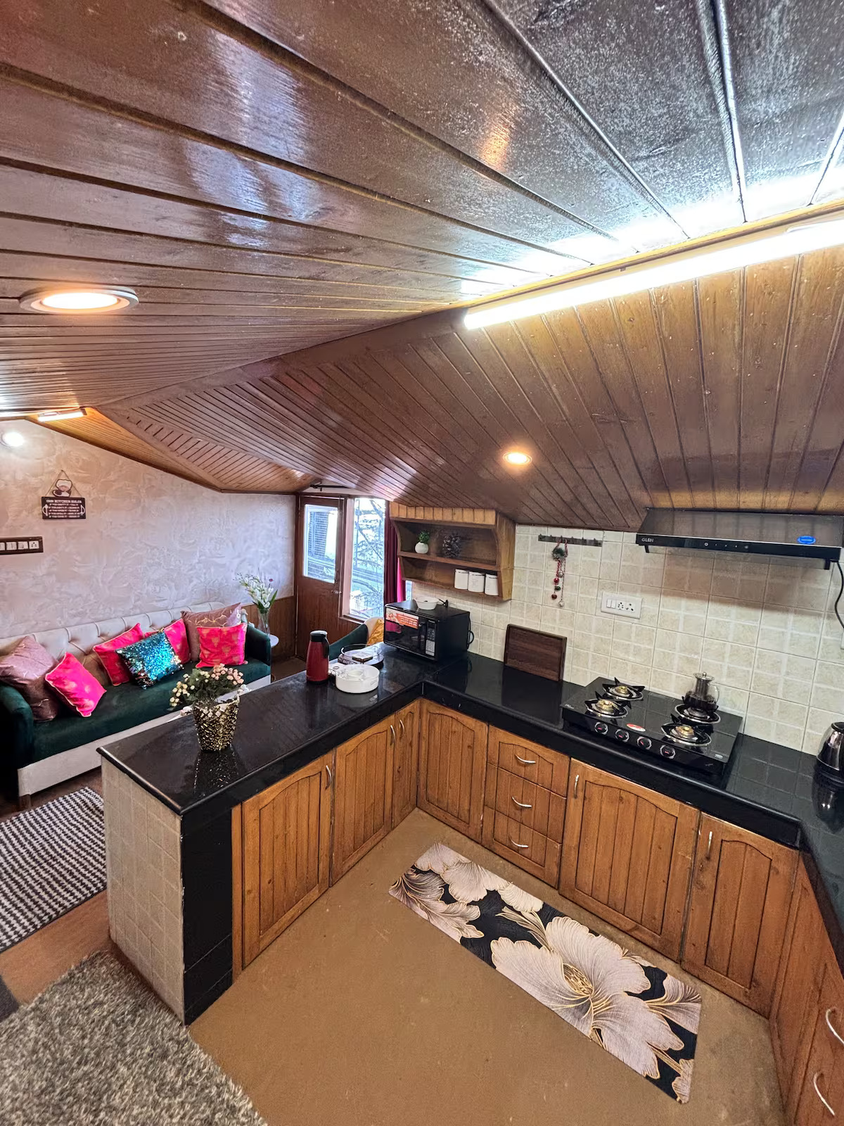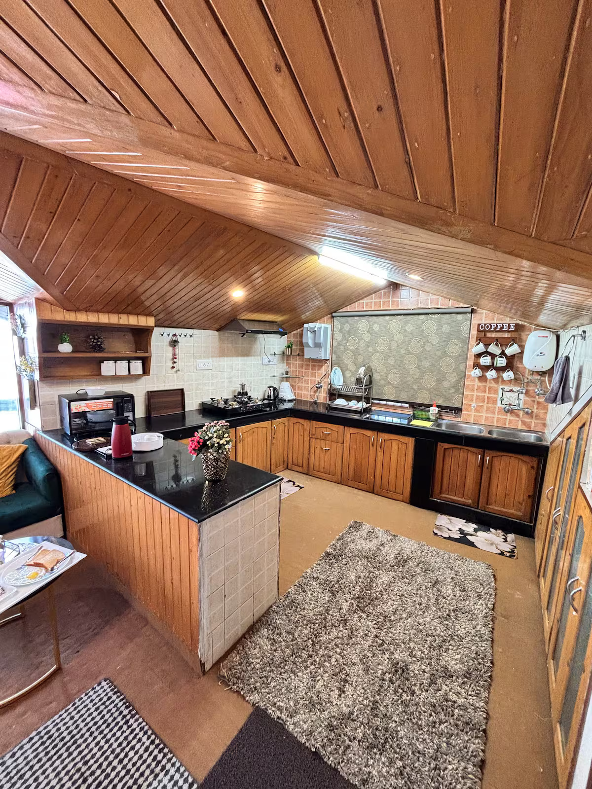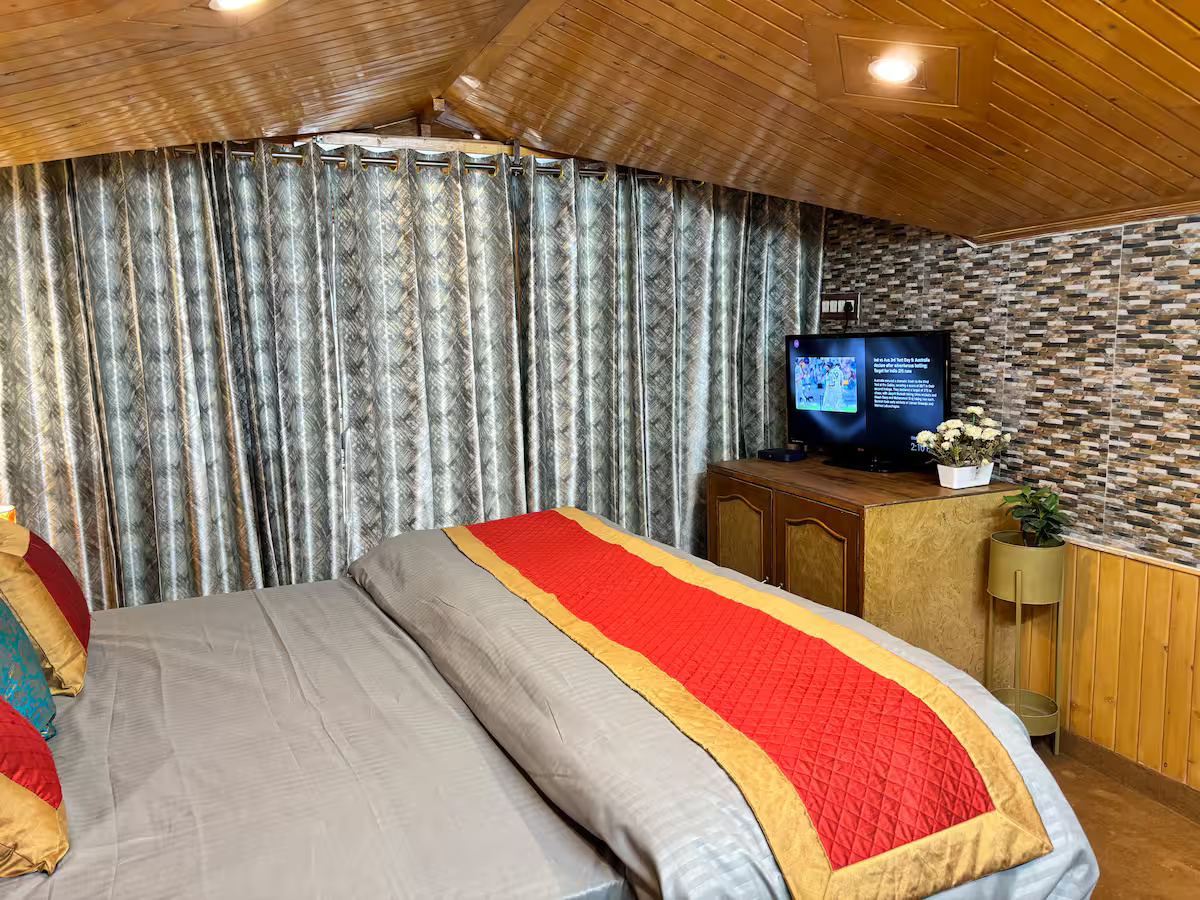Your stay at Jakhoo Nest Tiny House (2) includes a fully equipped dry kitchen with a microwave, refrigerator, RO water, electric kettle, and complimentary tea and coffee sachets. Enjoy a cozy living area with a smart TV (Netflix, Prime Video, etc.), high-speed Wi-Fi, and customised wooden furniture. The house offers 24-hour water supply, geysers, clean towels, shampoo, soap, and a comfortable sleeping arrangement with two king-size beds and one single bed. One room heater is provided free of charge; additional heaters are available at ₹200 per day. Daily housekeeping is included, and the caretaker can help with cooking using your own groceries.