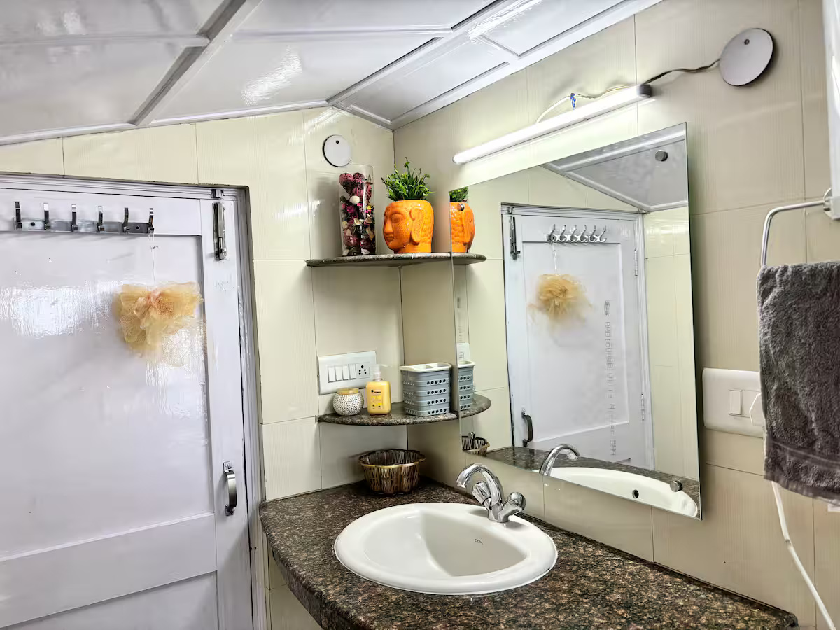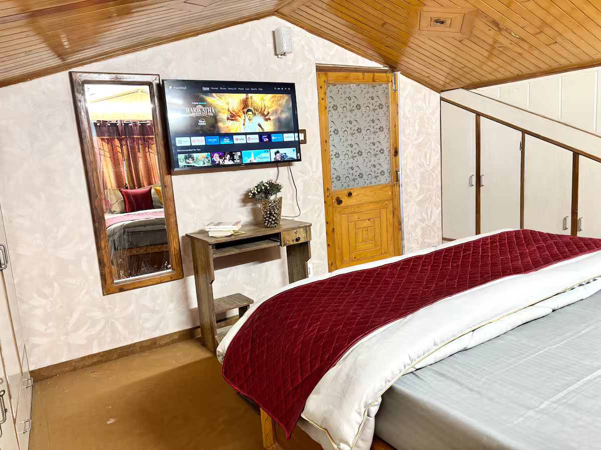 The house comes with modern comforts such as a smart TV with Netflix and Prime Video, high-speed Wi-Fi, a fully equipped dry kitchen with a microwave, refrigerator, kettle, RO water, tea/coffee sachets, 24-hour hot water, geysers, towels, shampoo, and soaps. One room heater is complimentary, with additional heaters available at ₹200/day. A caretaker is available for cleaning and basic cooking with your groceries. Pets are allowed, and your safety is ensured with responsible hosting and guidance.