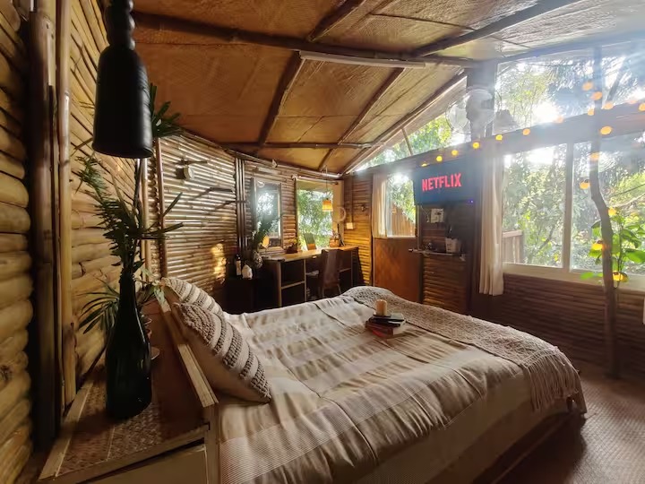 Wanderthirst Dharamshala offers a unique and soulful stay experience unlike any hotel or resort. Nestled amidst lush greenery in the heart of Dharamshala, this charming duplex tiny home brings you closer to nature with a cozy, tree-filled interior and serene surroundings. Perfect for those seeking solitude, comfort, and a touch of wilderness—all while staying within city limits.