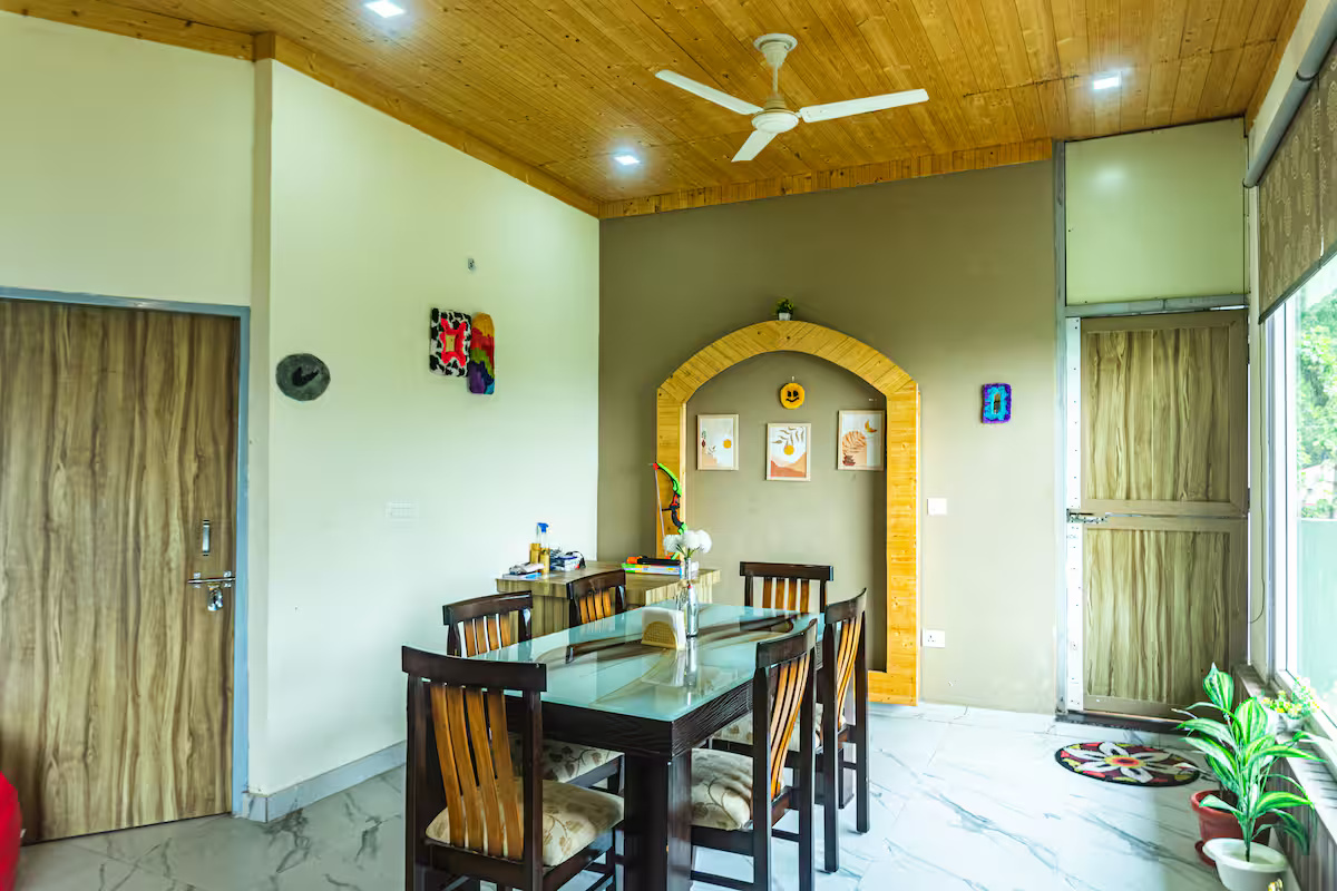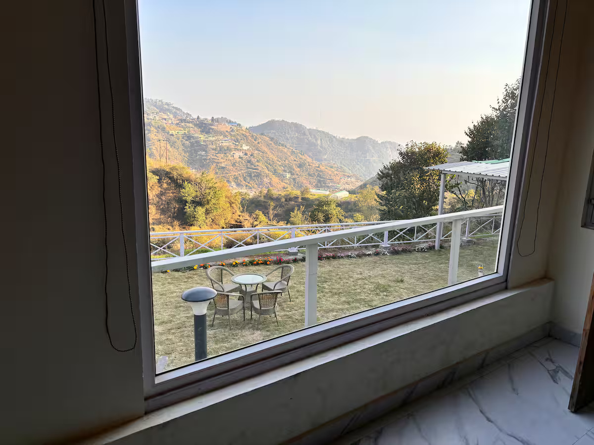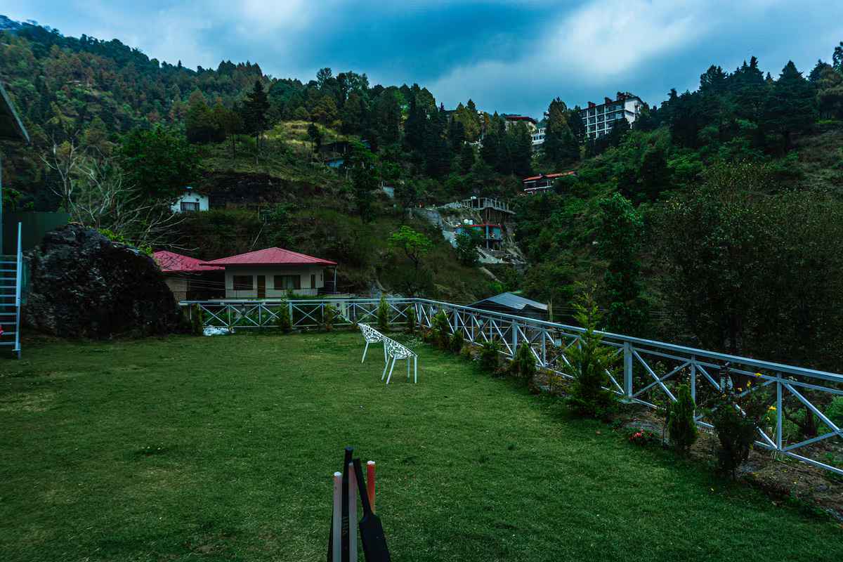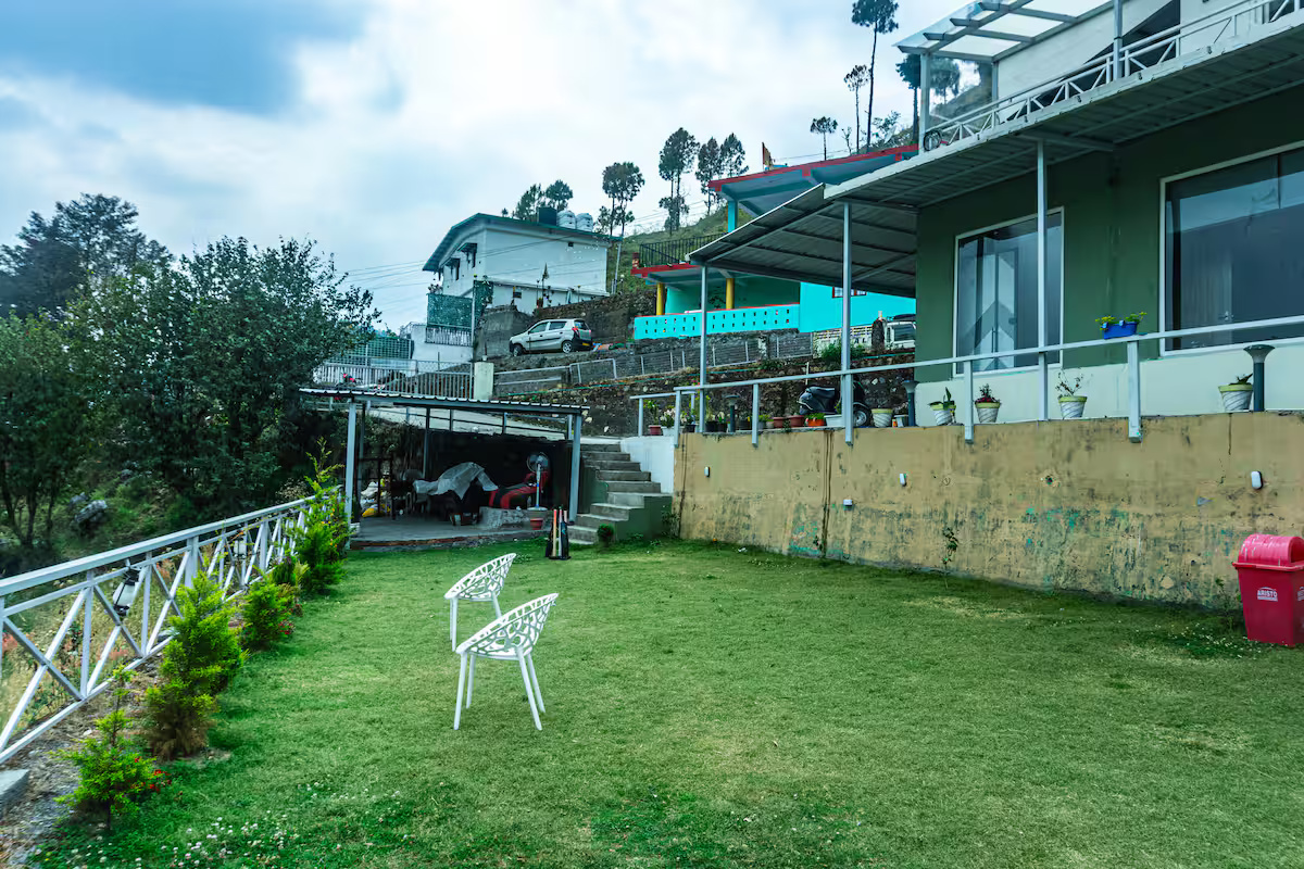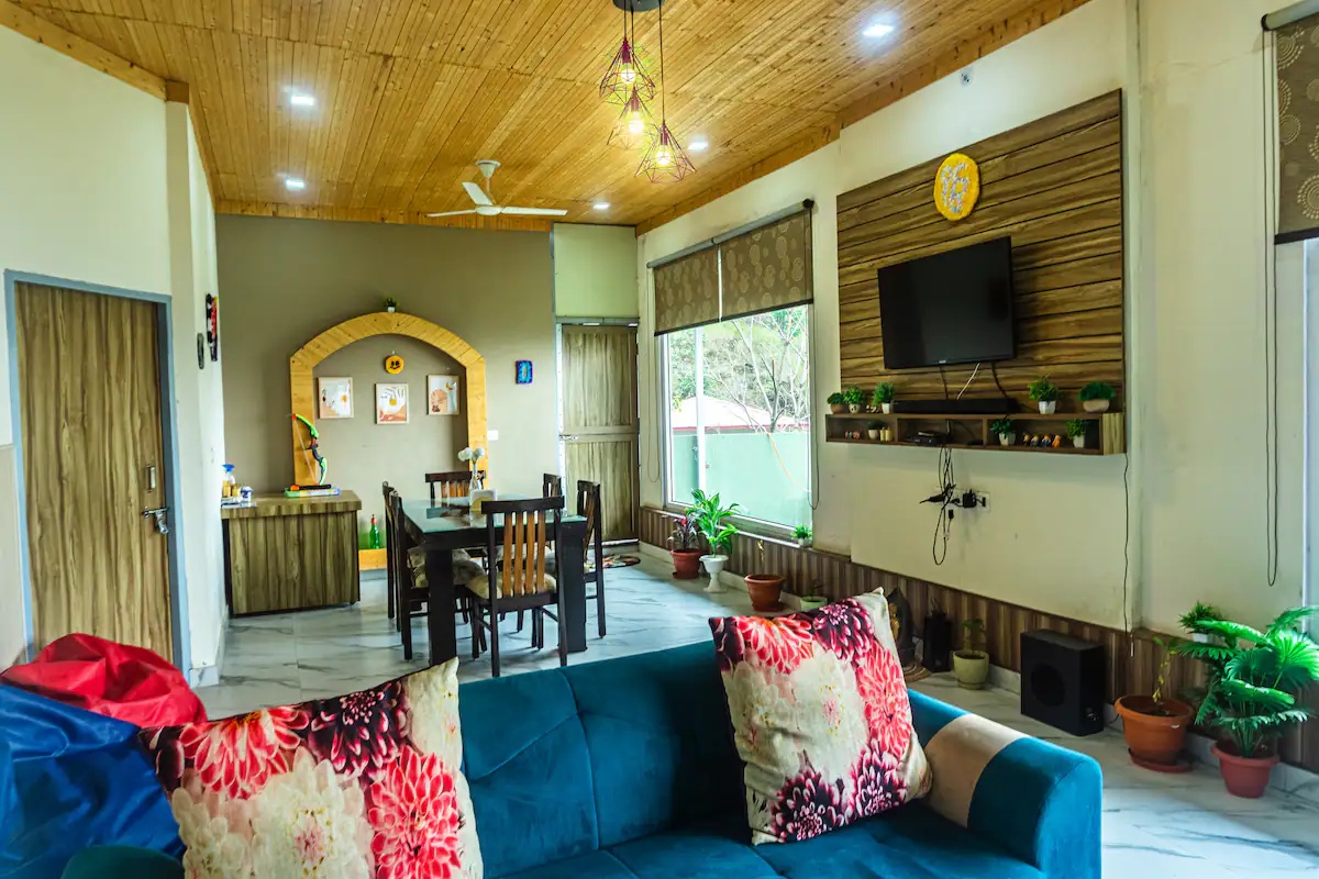 Raha Cottage features three spacious bedrooms with king-size beds and attached bathrooms, all located on the first floor, offering stunning views of the surrounding mountains and valley. The ground floor houses a warm and inviting living room with a TV, books, comfortable seating, and fixed Bluetooth speakers—ideal for relaxing or bonding with loved ones. A fully equipped indoor kitchen allows guests to cook their own meals, or request assistance from the caretaker for a small fee. Outdoors, the private garden provides a perfect setting for al fresco dining, bonfire nights, and games. With thoughtful amenities like Wi-Fi, power backup, private parking, and pet-friendly outdoor space, Raha Cottage ensures a relaxing and fulfilling hill-station escape.