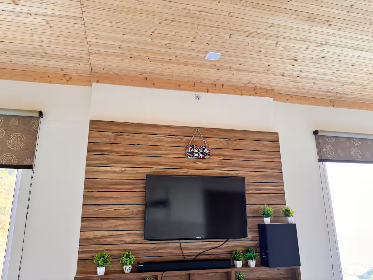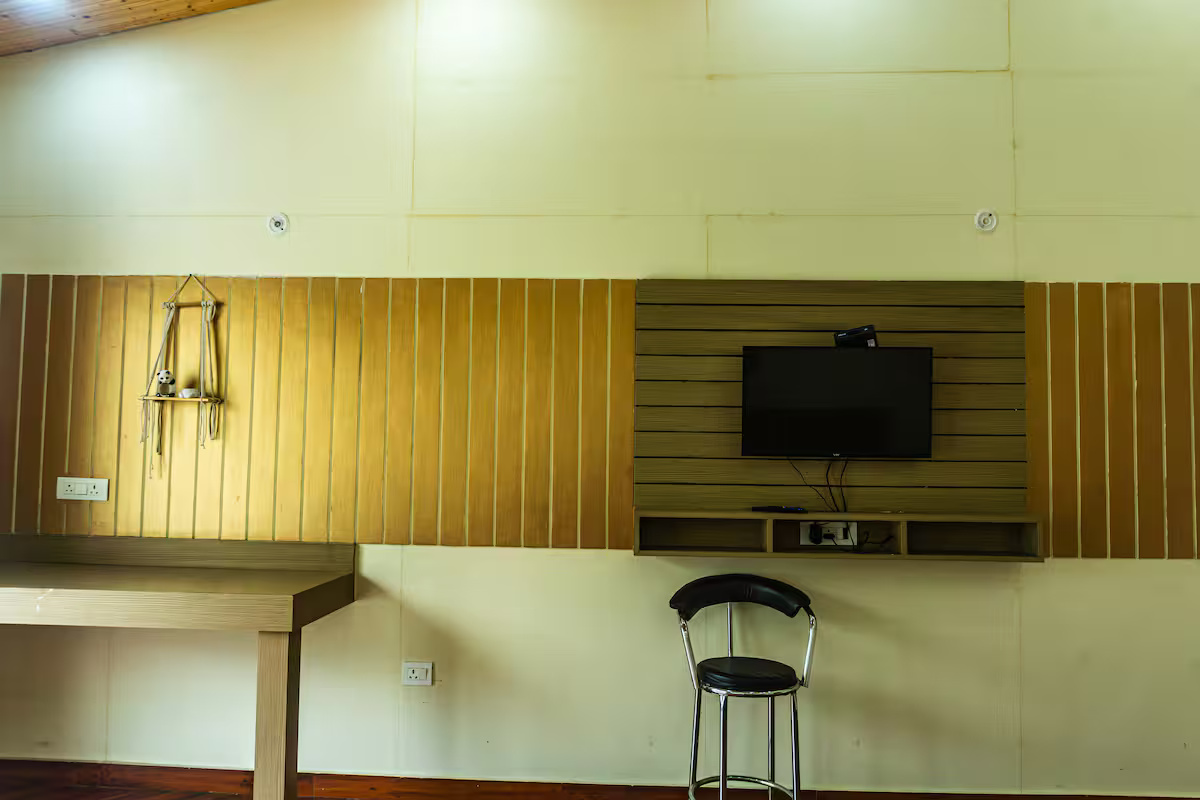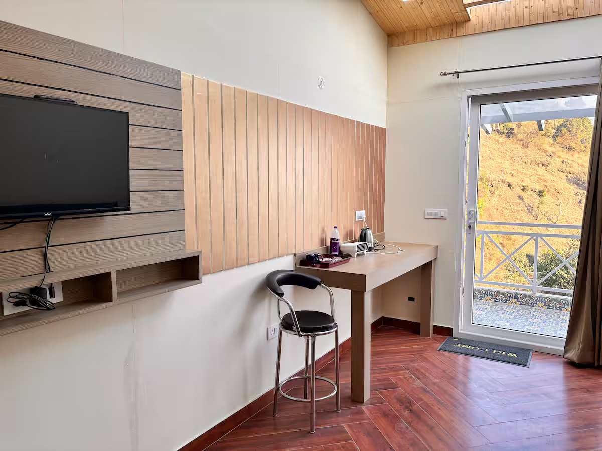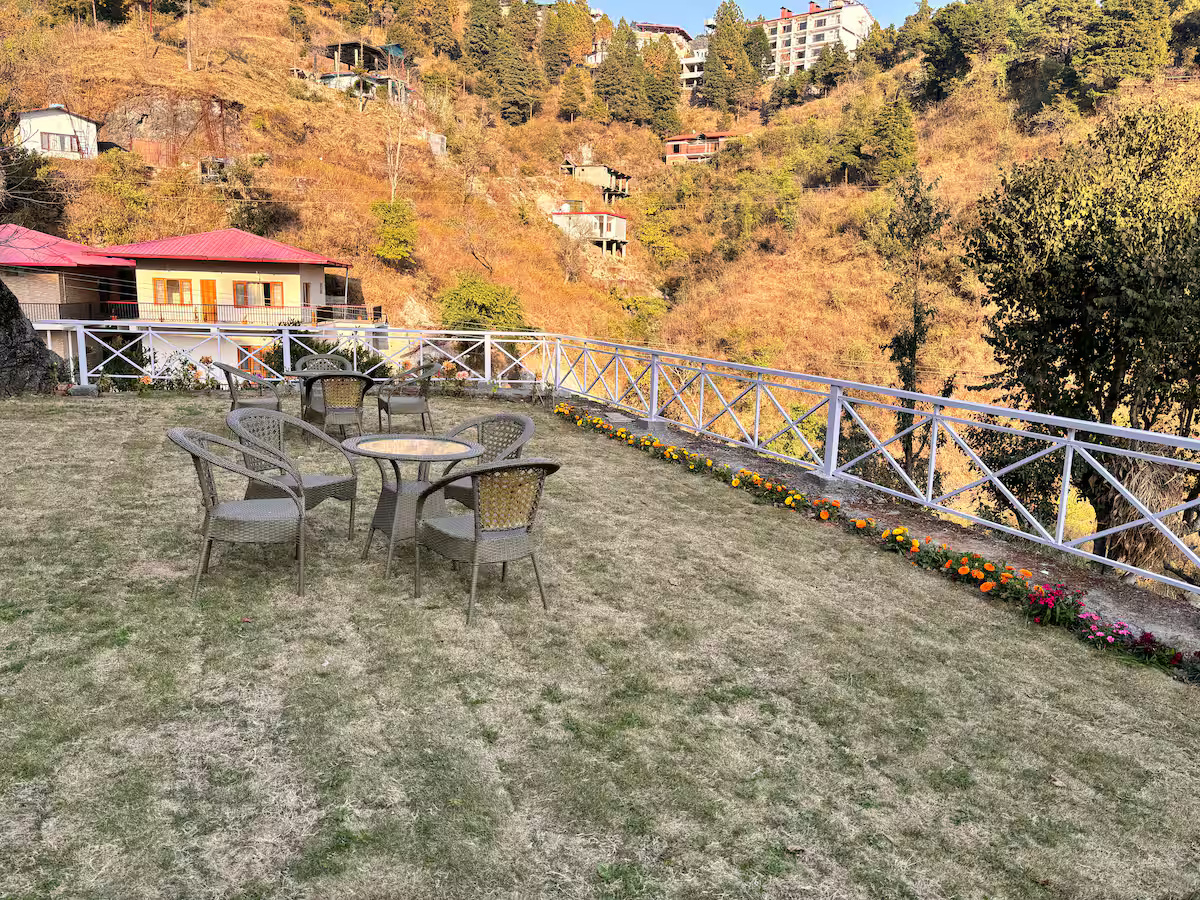 Raha Cottage features three spacious bedrooms with king-size beds and attached bathrooms, all located on the first floor, offering stunning views of the surrounding mountains and valley. The ground floor houses a warm and inviting living room with a TV, books, comfortable seating, and fixed Bluetooth speakers—ideal for relaxing or bonding with loved ones. A fully equipped indoor kitchen allows guests to cook their own meals, or request assistance from the caretaker for a small fee. Outdoors, the private garden provides a perfect setting for al fresco dining, bonfire nights, and games. With thoughtful amenities like Wi-Fi, power backup, private parking, and pet-friendly outdoor space, Raha Cottage ensures a relaxing and fulfilling hill-station escape.