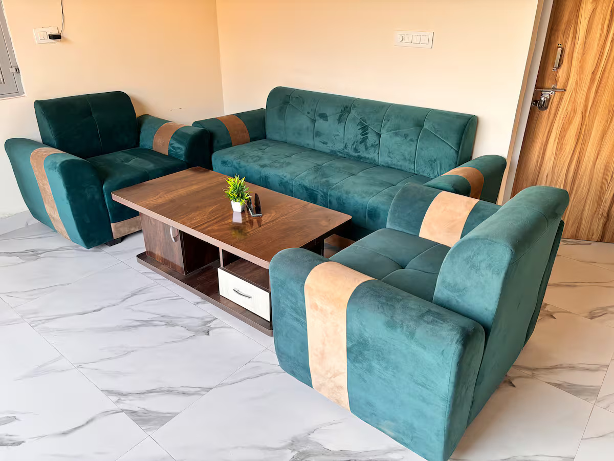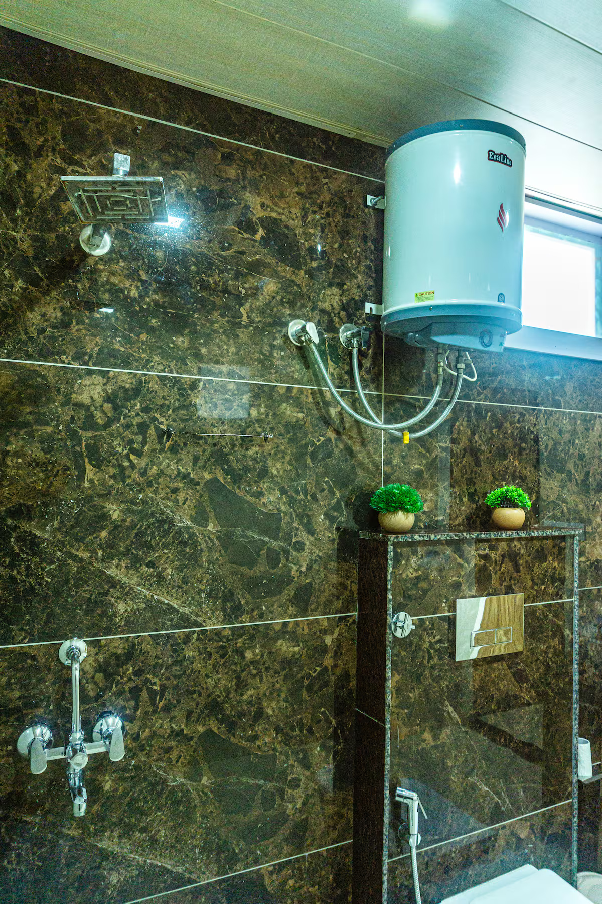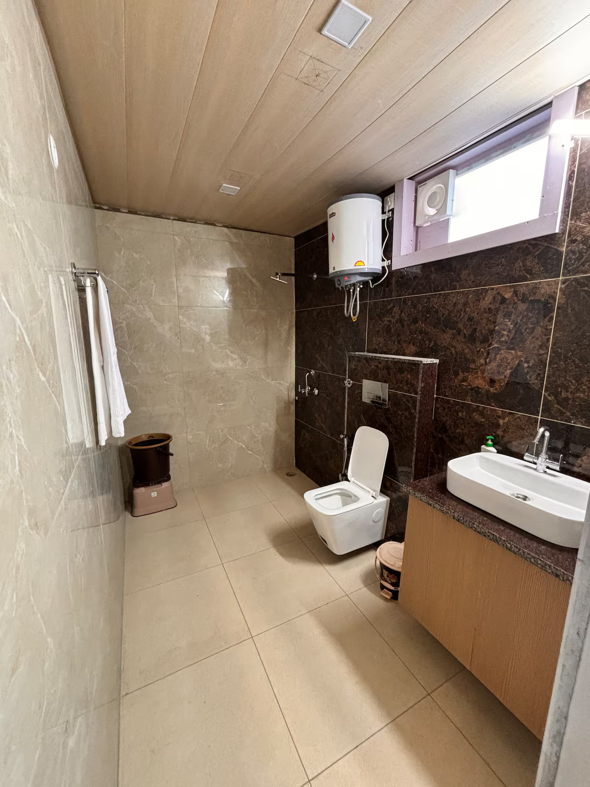 Your stay at Raha Cottage includes access to the entire property—three bedrooms, a cozy living area, a full kitchen, and a private garden. All bedrooms come with king-size beds, attached bathrooms, and views. Bathrooms are equipped with geysers, towels, and a toiletry dispenser, with extras available on request. The kitchen includes a gas stove, refrigerator, microwave, utensils, RO water, and basic spices. Guests also enjoy high-speed Wi-Fi (100 Mbps), parking for 4–5 cars, ceiling fans, water coolers, and heaters in winter. A caretaker and cleaning staff are available on-site for assistance, and inverter backup ensures comfort during power cuts.