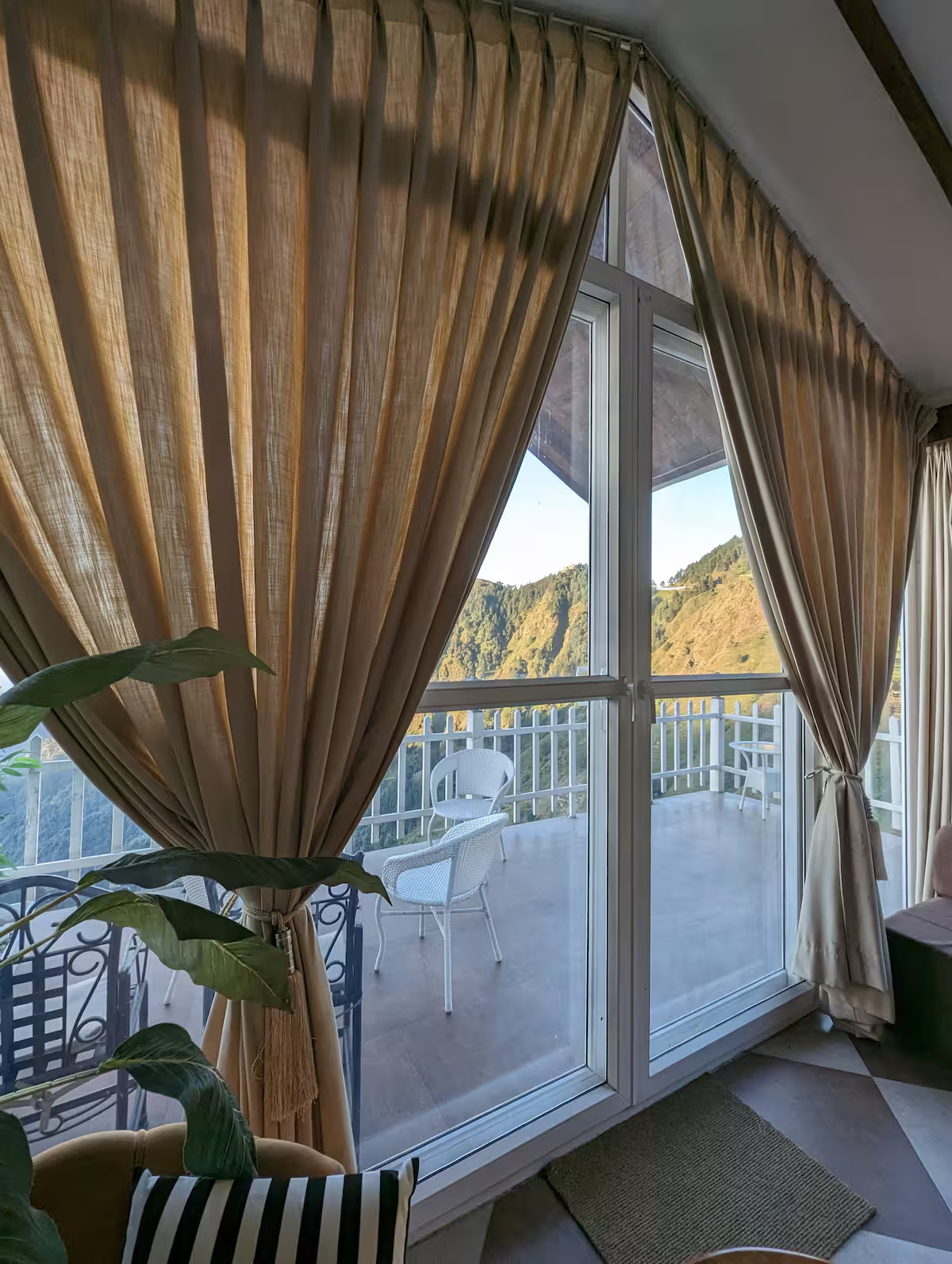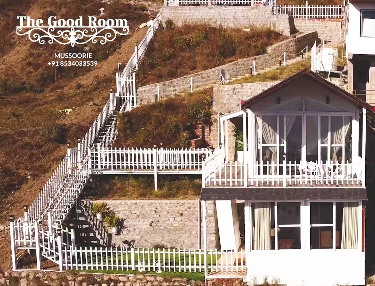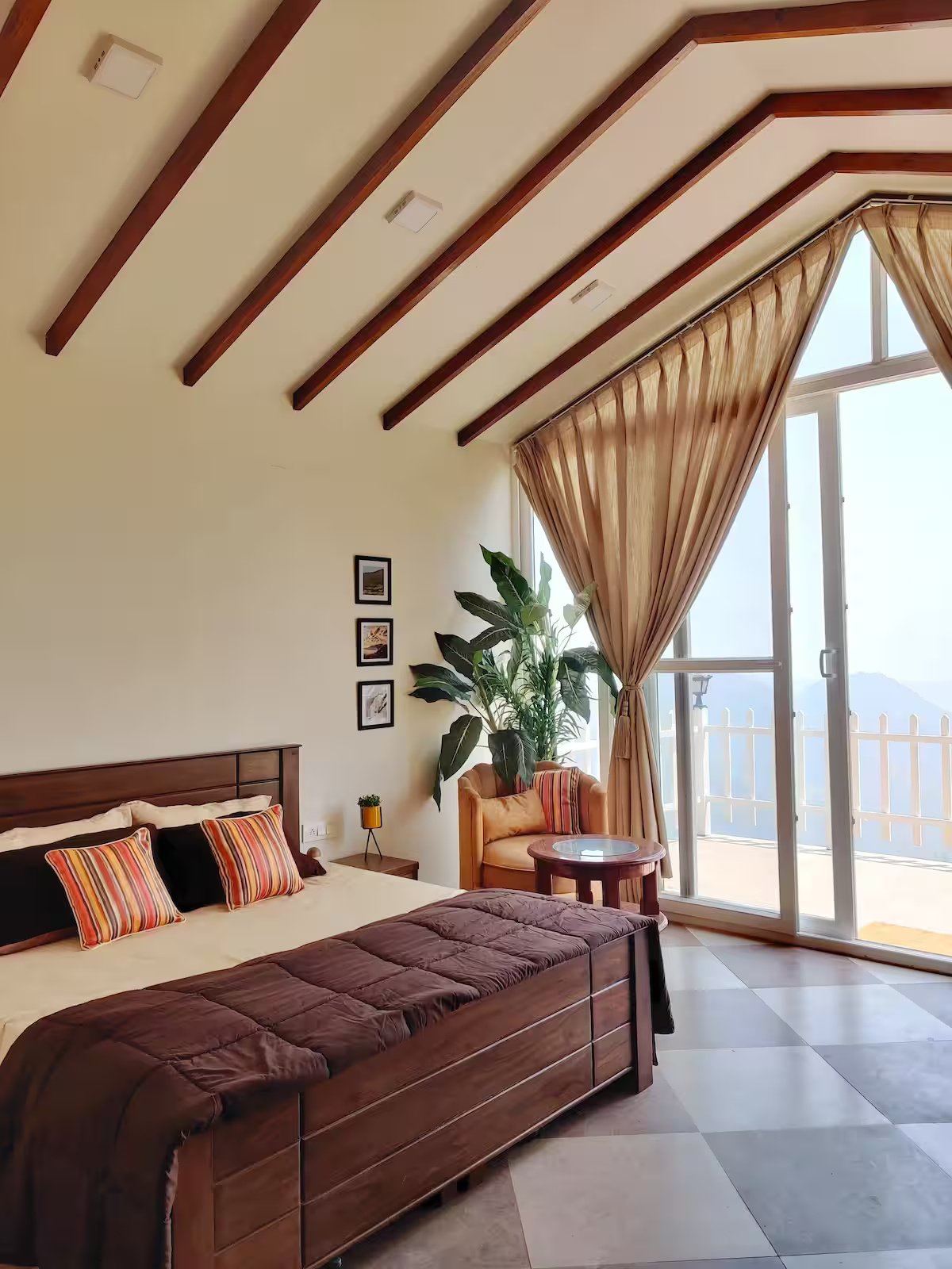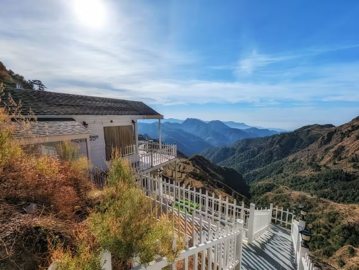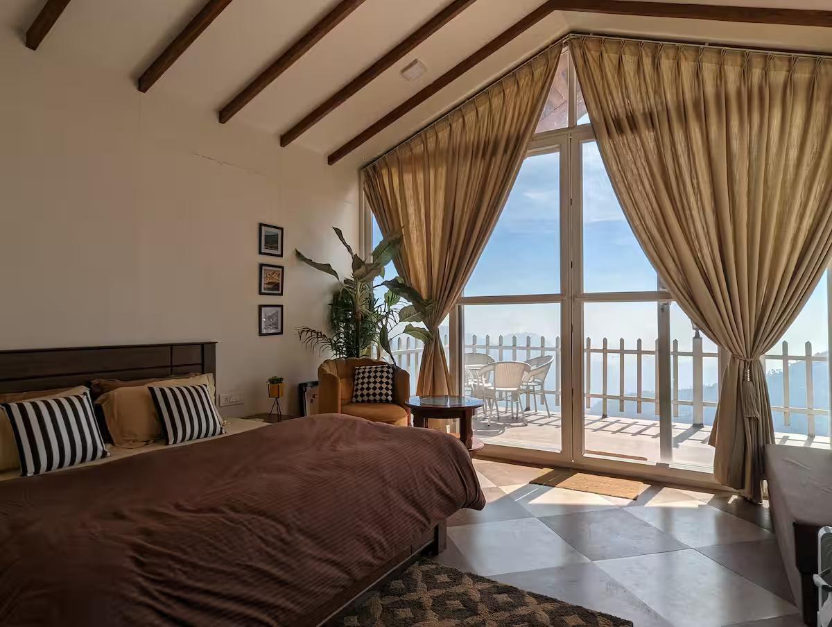 This dreamy mountain home features two spacious bedrooms, each with attached washrooms and beautiful views. The first bedroom includes a kitchenette with a mini fridge, microwave, and induction, along with a 52" TV, Wi-Fi, a cosy sofa cum bed, and a private open deck with outdoor seating. The second room offers a serene mountain valley view, double bed, sofa cum bed, and an electric kettle. Both rooms are equipped with quilts, blankets, and room heaters. Guests have full, private access to the entire space without any interruptions.