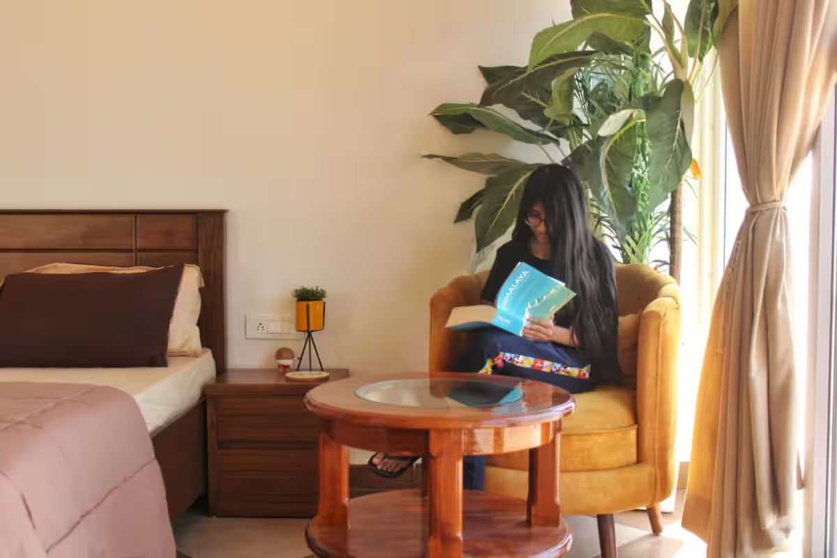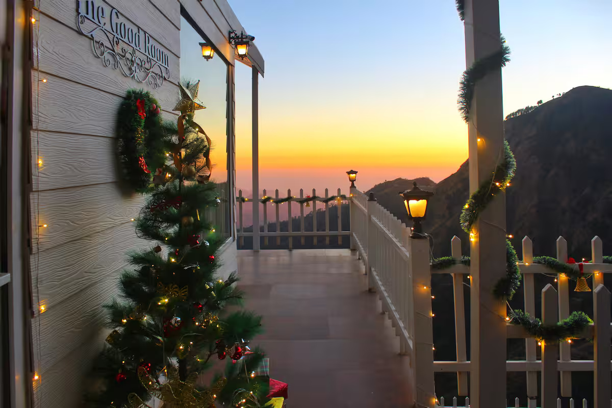 The stay includes access to two well-furnished bedrooms with attached washrooms, fresh linen, quilts, blankets, and room heaters for a comfortable stay. Guests can enjoy the convenience of a fully equipped kitchenette in one room, complete with a mini fridge, microwave, induction cooktop, and basic utensils. Entertainment is taken care of with a 52" TV and high-speed Wi-Fi. The private deck with outdoor seating offers the perfect spot to soak in the mountain views. An electric kettle, sofa cum beds, cosy seating areas, and ample storage with cupboards are also provided, ensuring a relaxed and home-like experience.